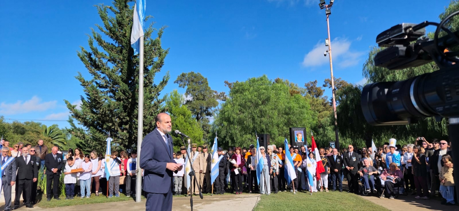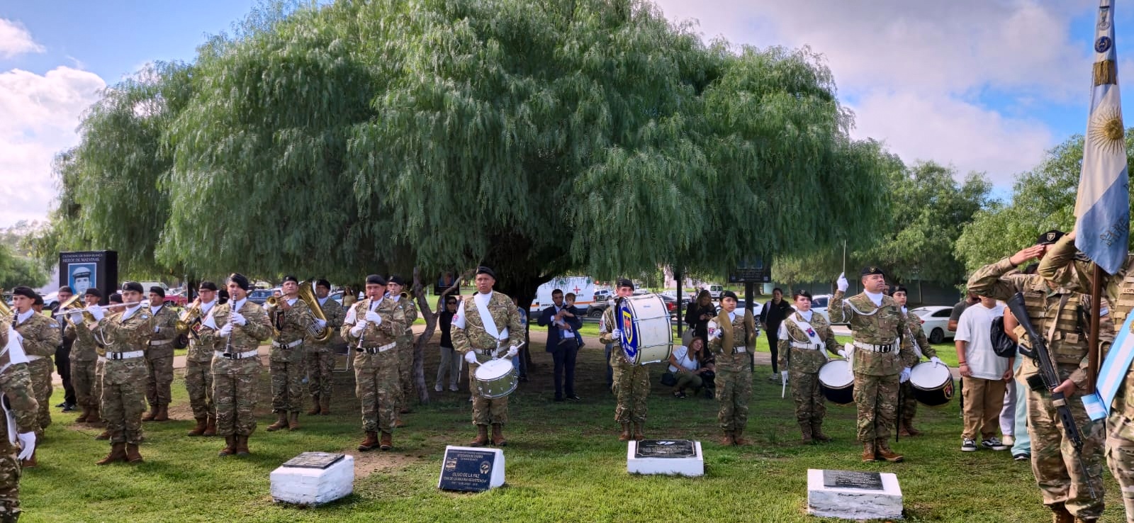 La ceremonia, tuvo lugar en el monumento a los caídos, ubicado en Cuyo y La Falda, y contó con la presencia de Veteranos, familiares, amigos y autoridades políticas, civiles y militares de la ciudad.